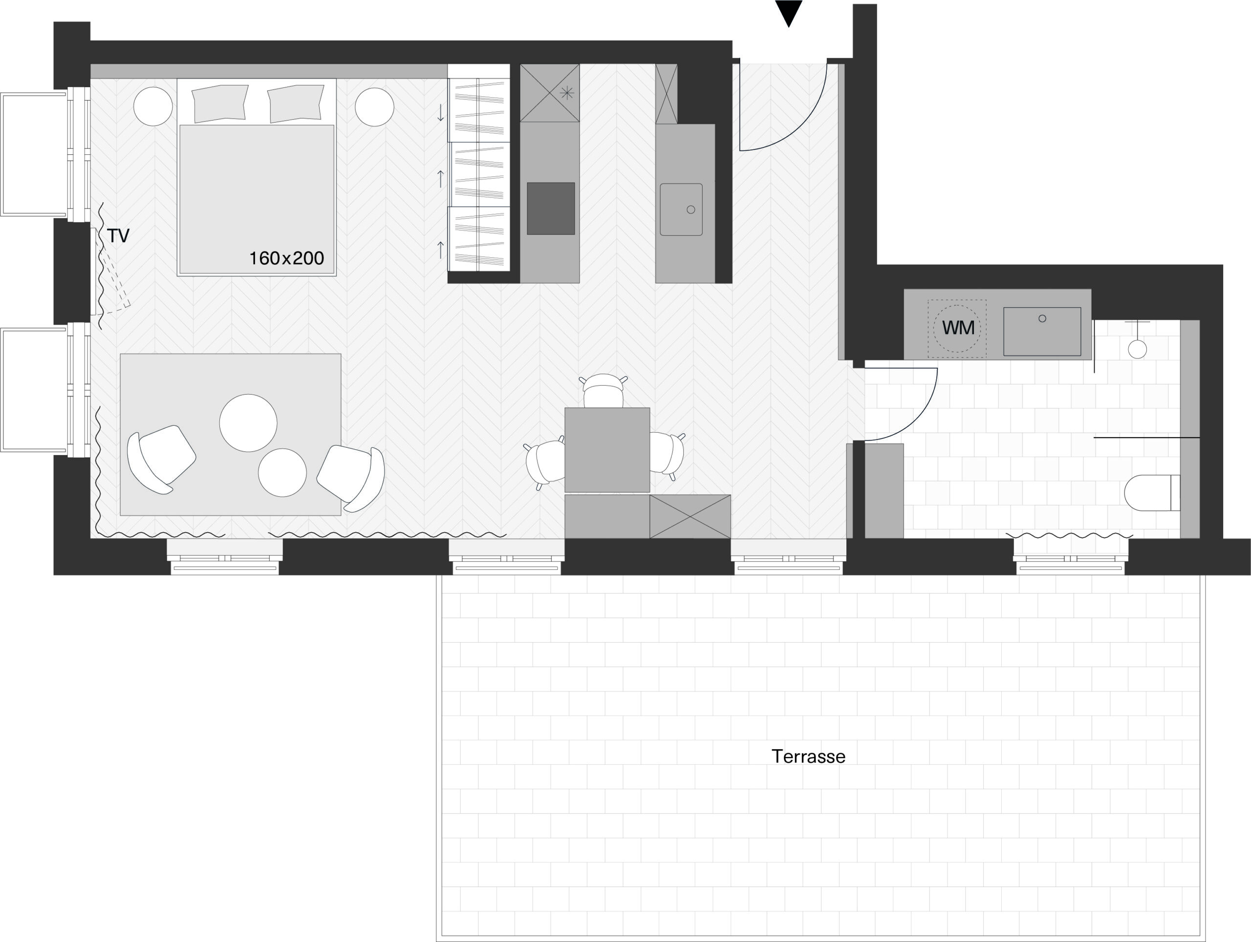 Ein großzügiger Grundriss, raumhohe schreinergefertigte Einbauschränke, Eichenparkettböden in Französisch-Fischgrät sowie elegante Stahl- und Holzmöbel von Designern wie &Tradition, HAY und Manue vermitteln eine zurückhaltend-natürliche französische Leichtigkeit. Feine Vorhangstoffe von Kvadrat sowie schwarz-weiße Bäder mit filigranen Armaturen des dänischen Herstellers Vola sorgen für eine harmonische Gestaltung und viel Raum für individuelles Wohnen.